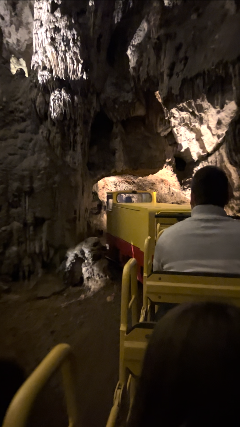 We take a seat in a small train that disappears into the cave.