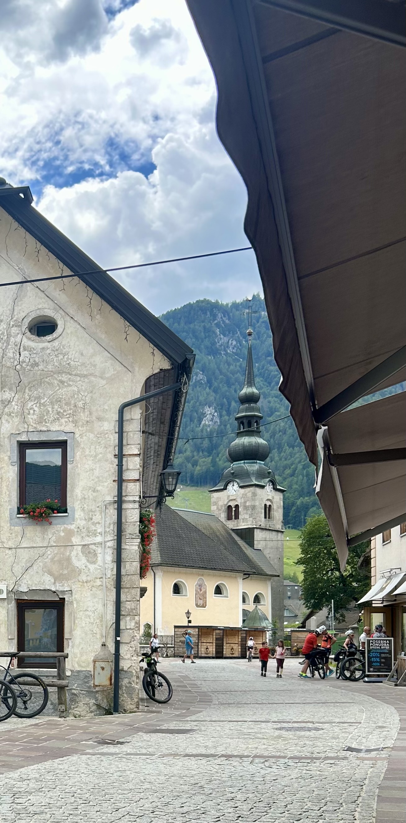 Kranjska Gora is also a sporty place. In winter it’s a ski resort. In summer the same terrain fills with cyclists, hikers and runners. Trails start right from the village. Bike paths run through the valley toward Italy and Austria. The mountains are close in every direction.